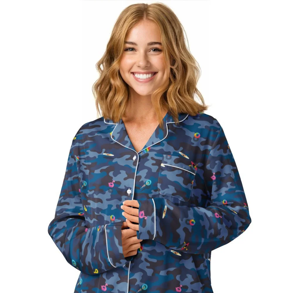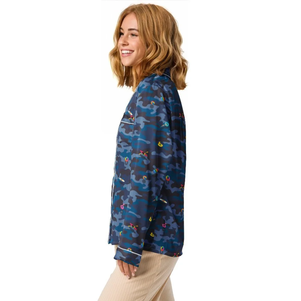 This silky pajama top is ideal for a cozy day when you want to feel both comfortable and elegant. It features a relaxed fit, chest pocket, and elegant piping detail. Click here for a size guide.